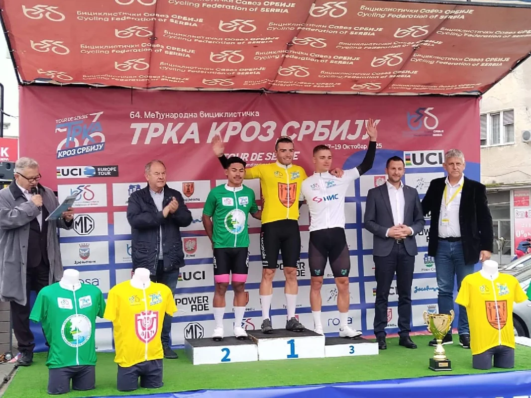 On je u sprintu na cilju, nadmašio Đorđa Đurića iz reprezentacije Srbije i Mihajla Stolića koji vozi za mađarski profi tim Junajted Šiping.