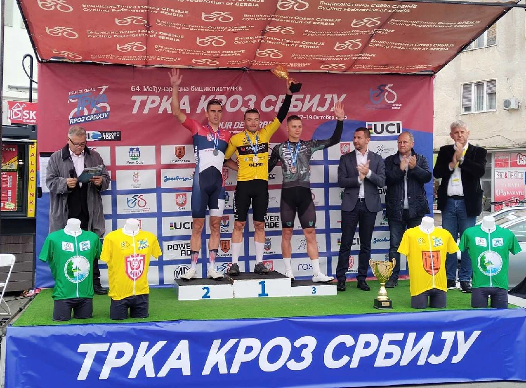 On je u sprintu na cilju, nadmašio Đorđa Đurića iz reprezentacije Srbije i Mihajla Stolića koji vozi za mađarski profi tim Junajted Šiping.