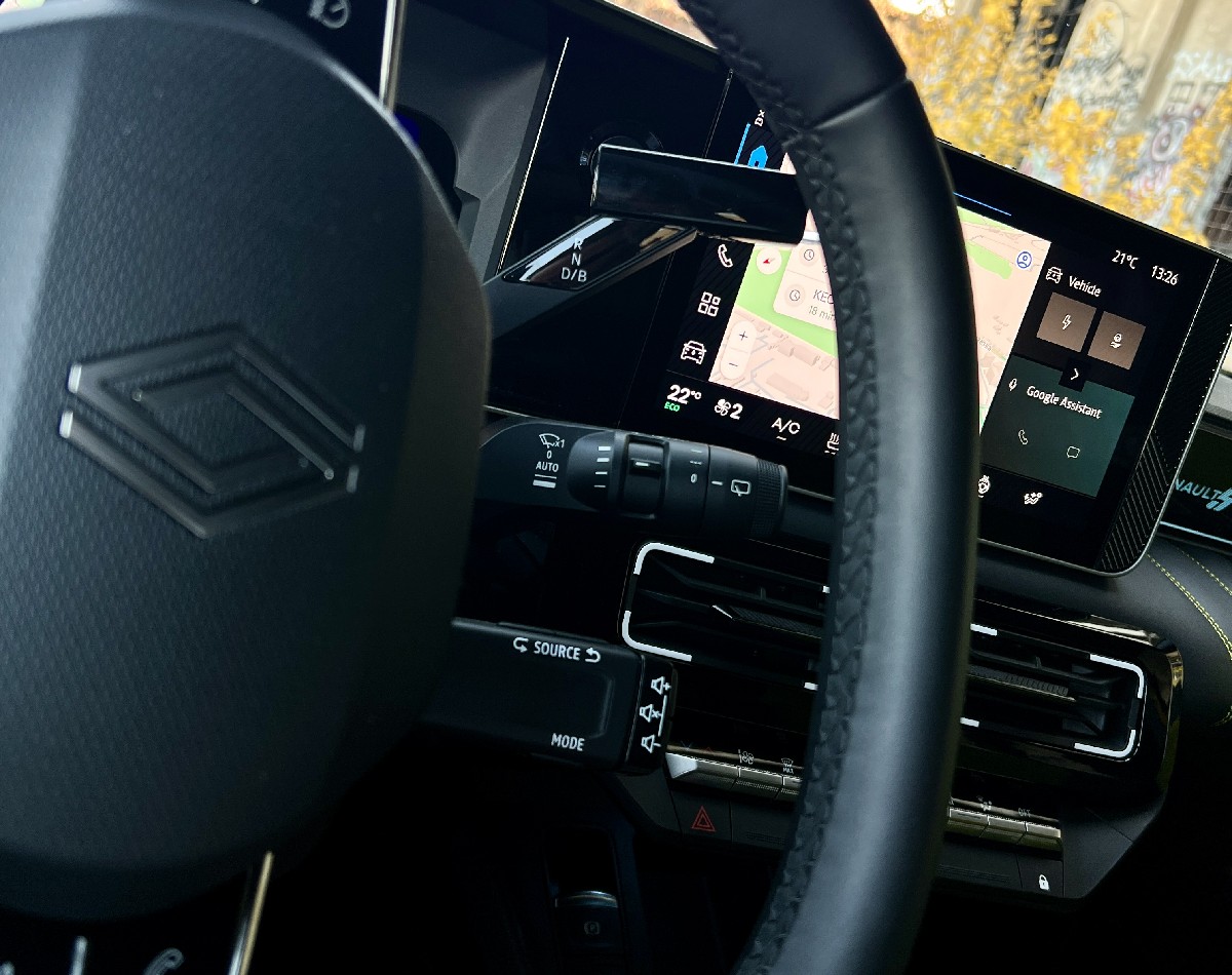 Kabina kombinuje moderne materijale sa diskretnim retro akcentima. Instrument tabla je digitalna, a infotainment sistem koristi napredan softver i virtuelnog asistenta “Reno”, koji reaguje na glasovne komande i olakšava upravljanje funkcijama automobila.